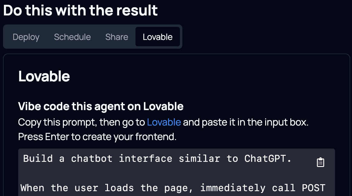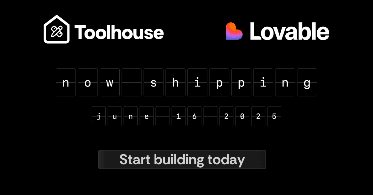 We've already witnessed countless builders building their frontend with Lovable, then coming to Toolhouse to build specialized agents. Because each agent is an API, Lovable will easily know how to integrate with us.